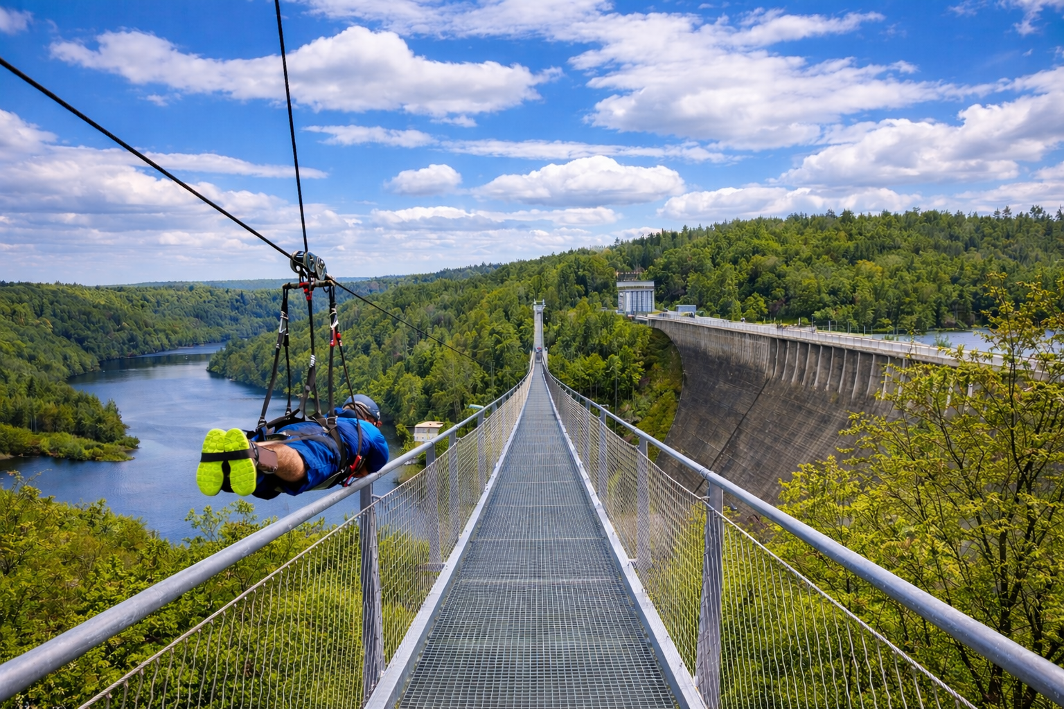 Ein Erlebnis für jedes Alter: oben über den Baumwipfeln laufen und die Aussicht genießen – besonders familienfreundlich.